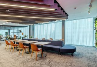 Silent Gliss ha contribuito con tende a rullo motorizzate e a catenella, oltre a tende arricciate a motore, tutte realizzati con i tessuti Colorama 1 e Versascreen. Questi sistemi migliorano l’efficienza energetica dell'edificio gestendo il calore solare, aumentano il comfort e aggiungono un design elegante e moderno. I tessuti scelti assicurano un’ottima diffusione della luce e una regolazione termica efficace, in piena armonia con gli obiettivi di sostenibilità della sede.